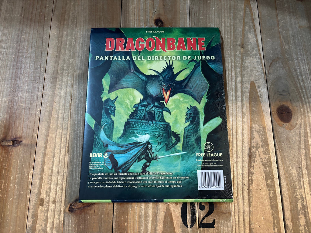 Una pantalla de lujo en formato apaisado para el JdR de Dragonbane. La pantalla muestra una espectacular ilustración de Johan Egerkrans en el exterior y una gran cantidad de tablas e información útil en el interior, al tiempo que mantiene los planes del director de juego a salvo de los ojos de sus jugadores.