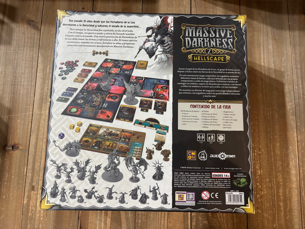 Massive Darkness 2: Hellscape pone a los jugadores en el papel de Portadores de la Luz que buscan derrotar a la Oscuridad. Los personajes con diferentes clases a elegir juegan de manera diferente, lo que brinda a los jugadores nuevas opciones y desafíos en cada partida. Los diferentes escenarios de exploración de mazmorras pondrán a prueba su temple, obligándolos a trabajar juntos para vencer al enemigo.